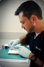 Once the initial injection is over, the remainder of you day will be relatively pain free as any subsequent anesthetic will be added while the area remains numb. It usually takes less then 10-15 minutes to anesthetize the involved area and complete the first step of the surgery. After this first step, your wound will be bandaged and you will be escorted to join your family/friends in our private waiting room while we begin processing the tissue in our office laboratory.